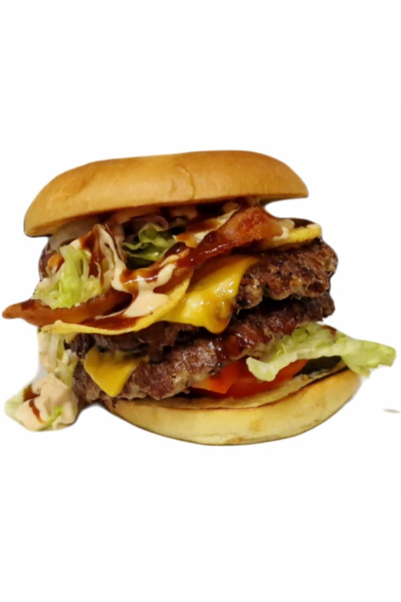 Eldhusrøkt Bacon, Ost, Salat, Tomat, Sylteagurk, Rødløk, Tortilla, bbq, husets dressing