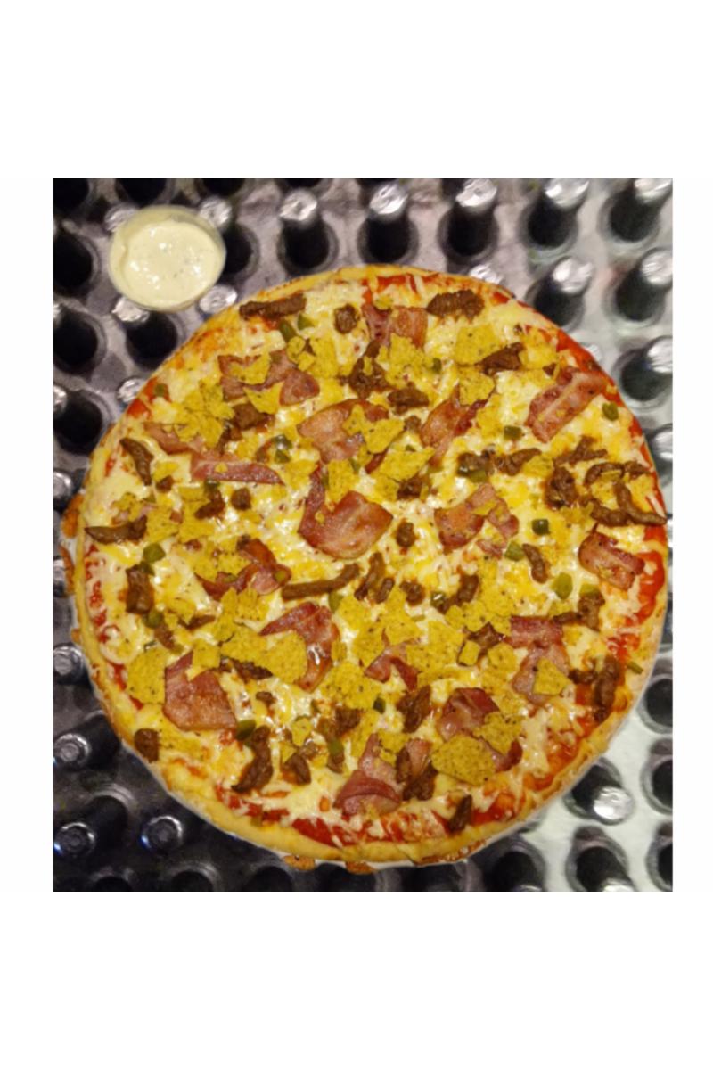Tomatsaus, Ost, Marinert Biff, Eldhusrøkt Bacon, Jalapenos, Tortillachips