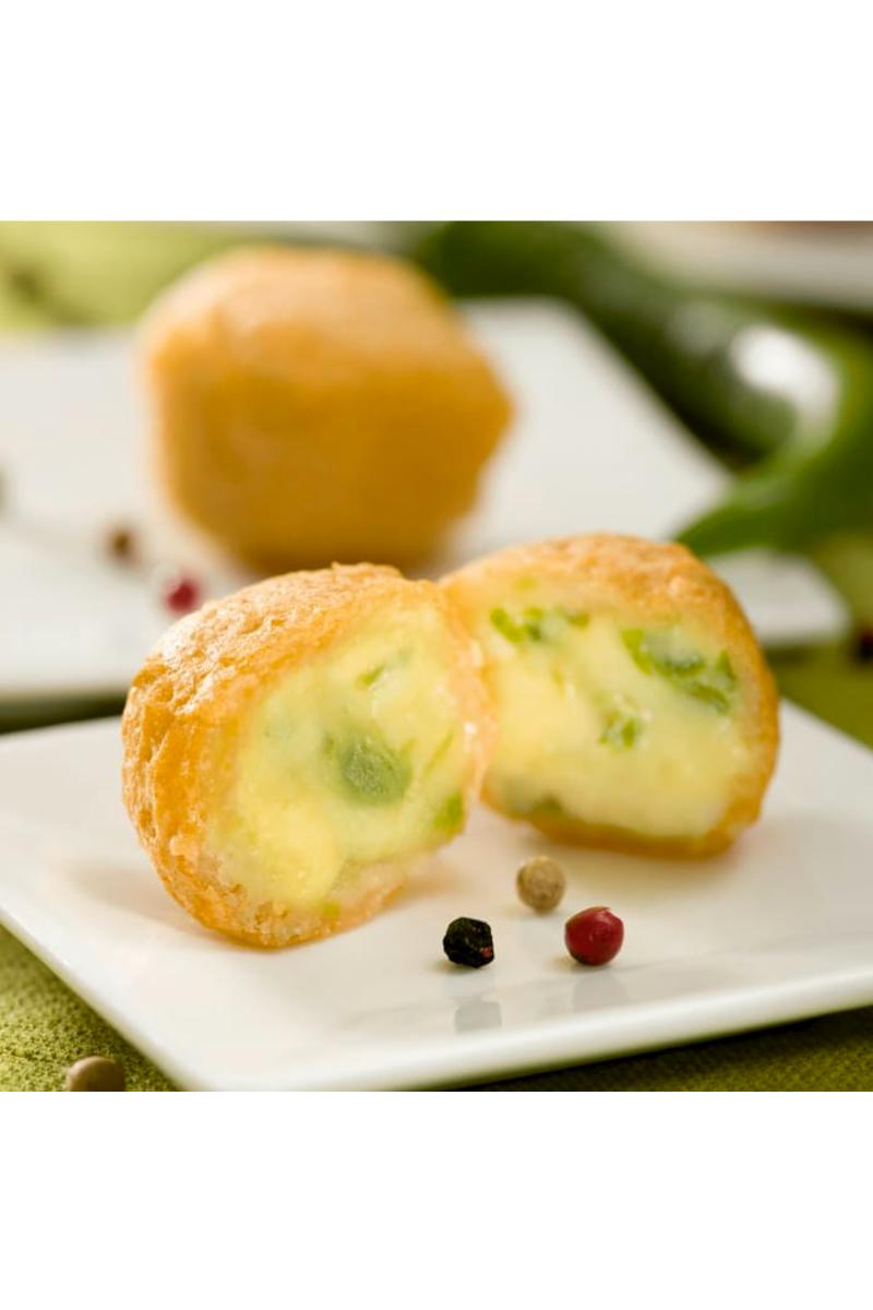 Sprø vegetarisk nugget fylt med cheddarost og biter av grønn pepper. Passer perfekt som snacks